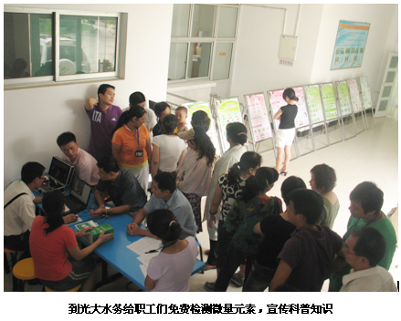 為擴大科普宣傳范圍,我們走進企業(yè),為廣大的青壯年職工們進行免費的微量元素檢測。使正處于社會棟梁的人才在追求事業(yè)的同時能夠真正關(guān)心自己的健康。