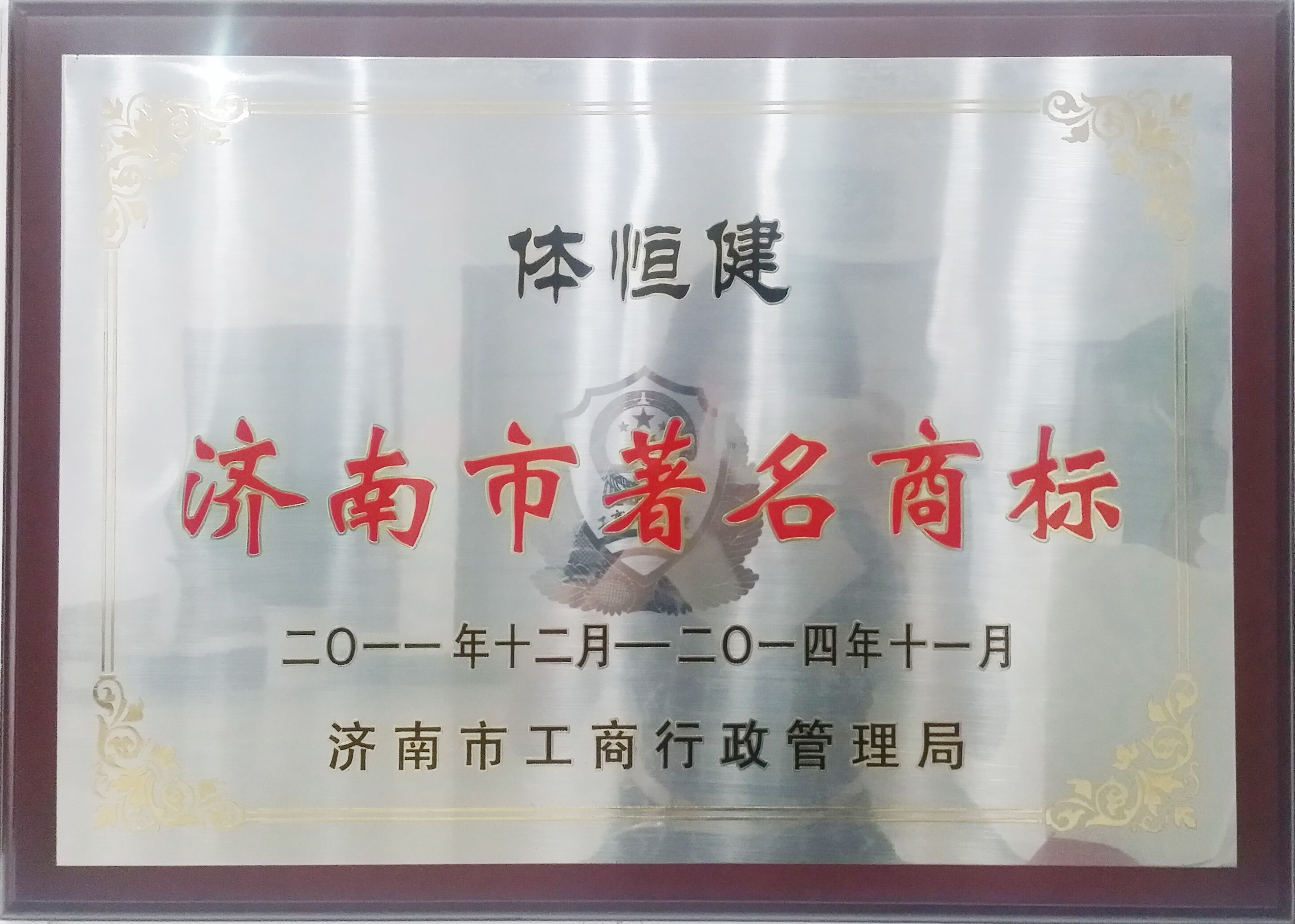 2008年,“體恒健”被濟(jì)南市工商局評(píng)為“濟(jì)南市著名商標(biāo)”