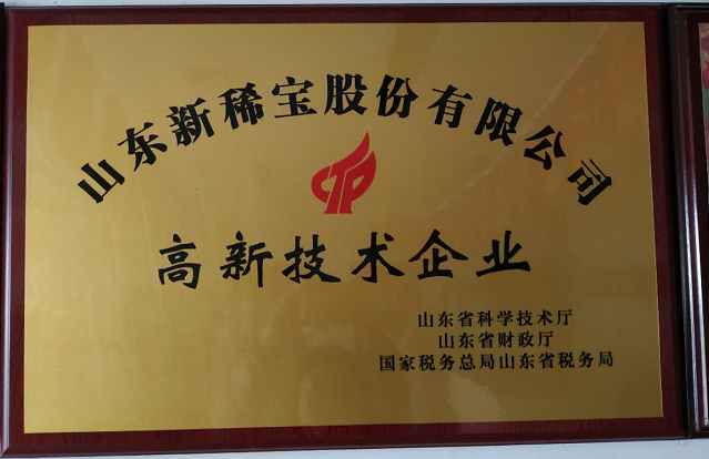 2018年,山東新稀寶股份有限公司被山東省科學技術(shù)廳、山東省財政廳、國家稅務總局山東省稅務局評為“高新技術(shù)企業(yè)”