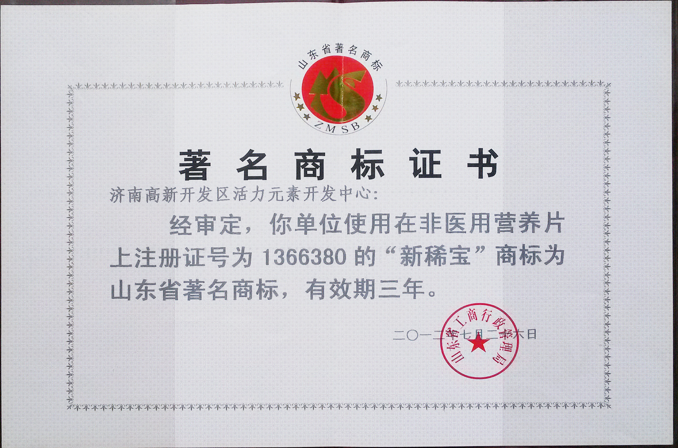 2009年,“新稀寶”被山東省工商行政管理局評為“山東省著名商標(biāo)”