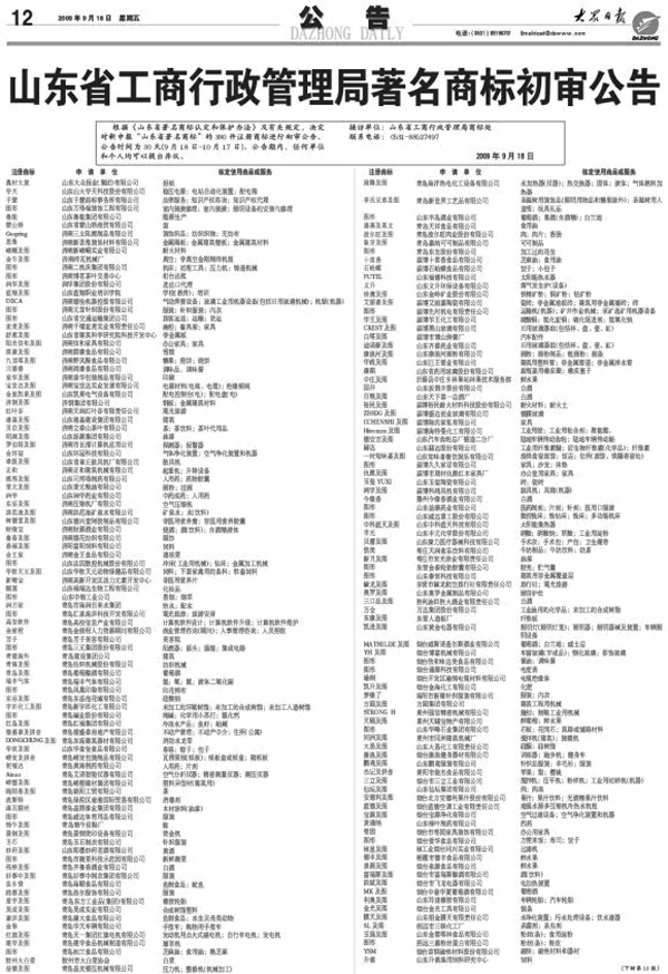 2009年,“新稀寶”申報(bào)山東省著名商標(biāo)已獲得初審?fù)ㄟ^,并于2009年9月18日《大眾日報(bào)》第12版進(jìn)行公告。