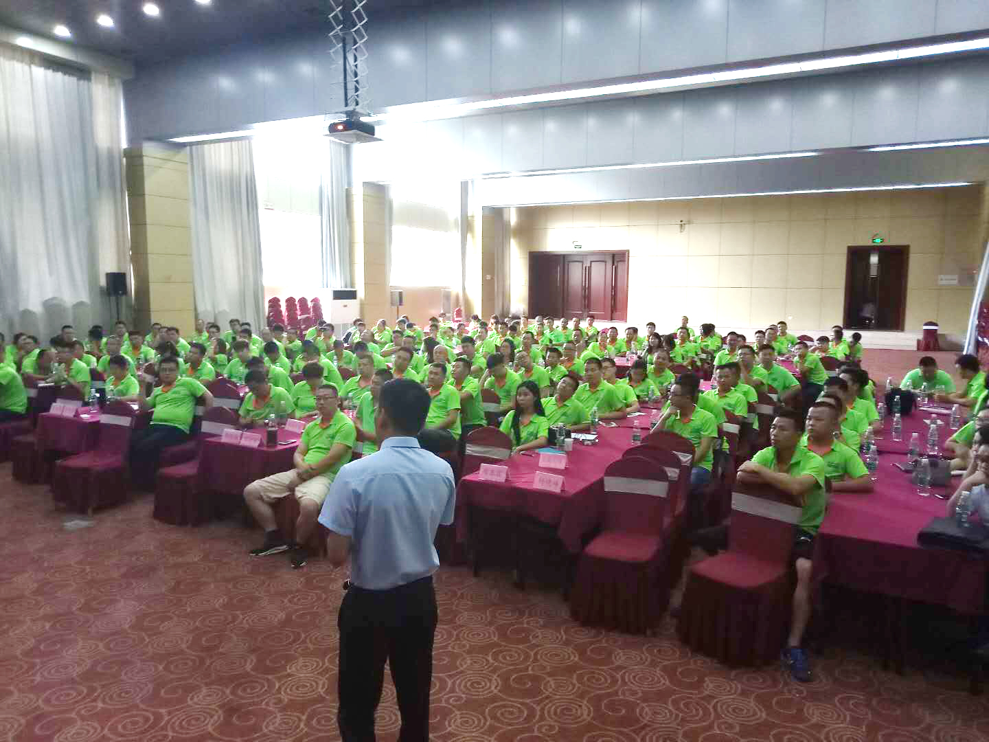 7月11日下午,銷售將士們終于滿心歡喜地抵達(dá)濟(jì)南,分別乘坐3輛大巴前往南部山區(qū)華越泰瀛酒店,一路上相互問(wèn)候、相互取經(jīng),開(kāi)心暢聊。抵達(dá)酒店后,全體將士都收到了事業(yè)部為大家準(zhǔn)備的統(tǒng)一著裝,為期三天的會(huì)議即將在軍事化的訓(xùn)練和要求中進(jìn)行,每天清晨的早操都給我們的一天注入了新鮮的活力。