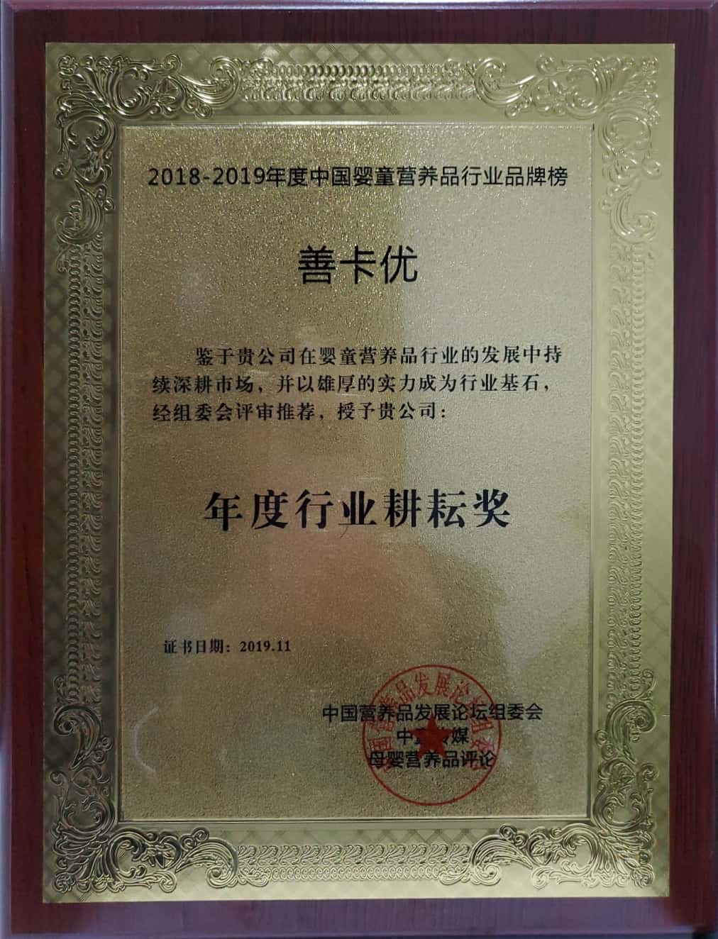 善卡優(yōu)被中國營養(yǎng)品發(fā)展論壇組委會評為“年度行業(yè)耕耘獎”