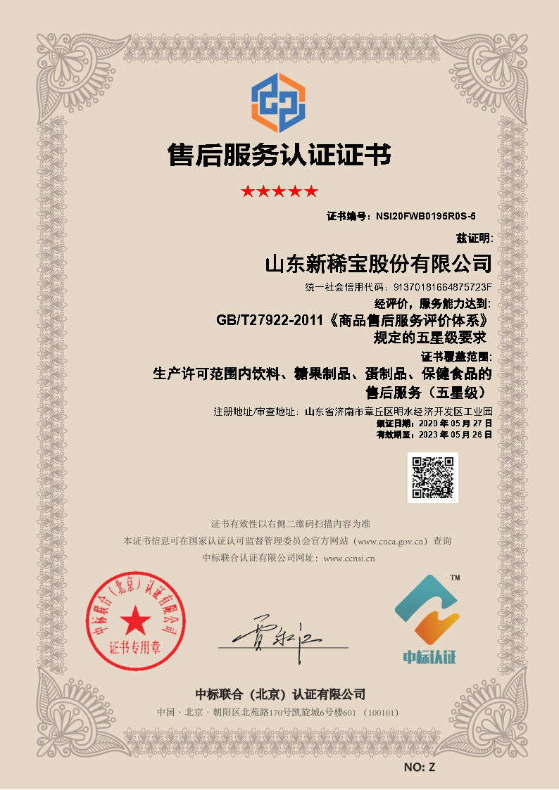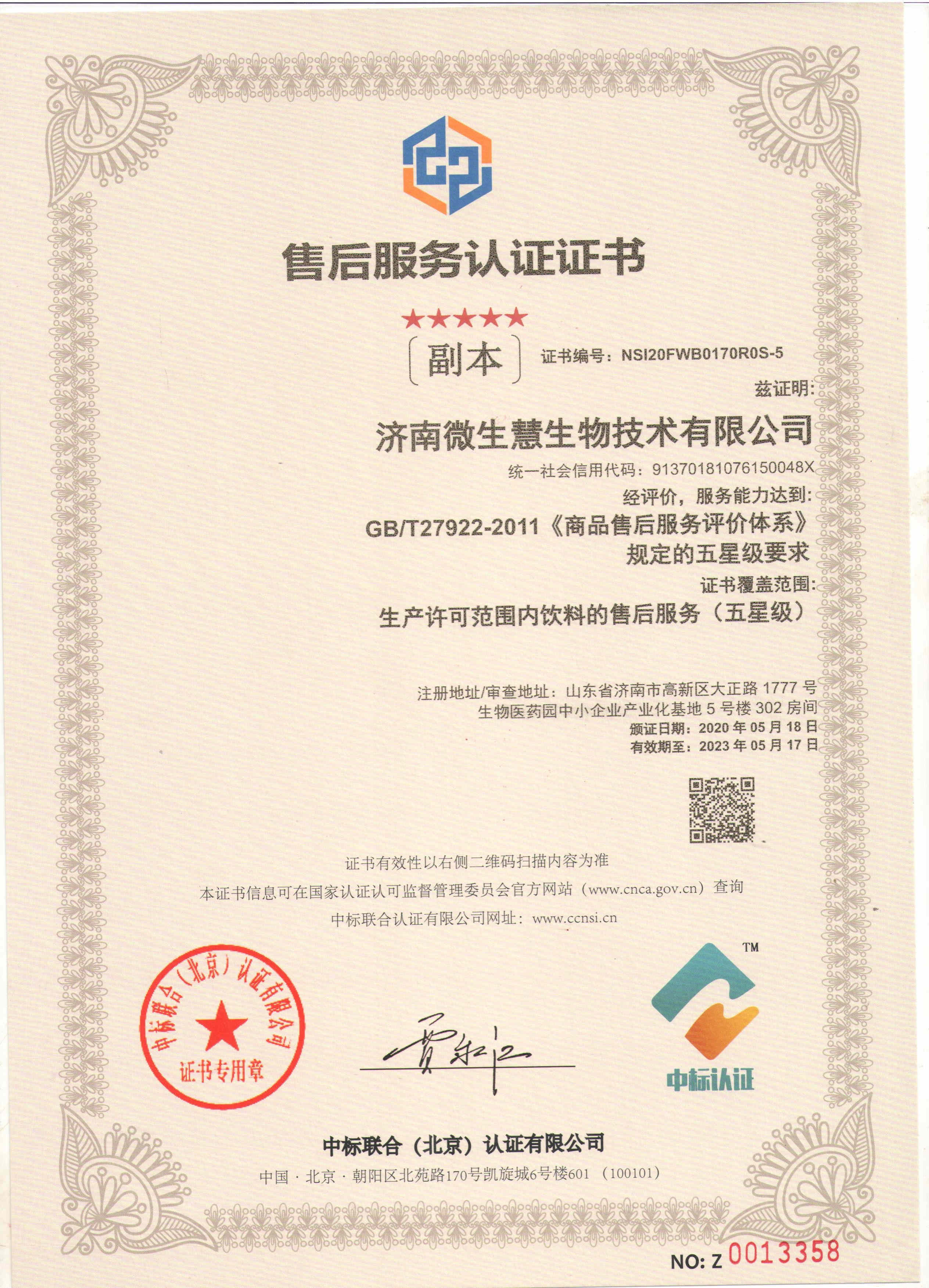 五星級(jí)售后服務(wù)認(rèn)證證書
