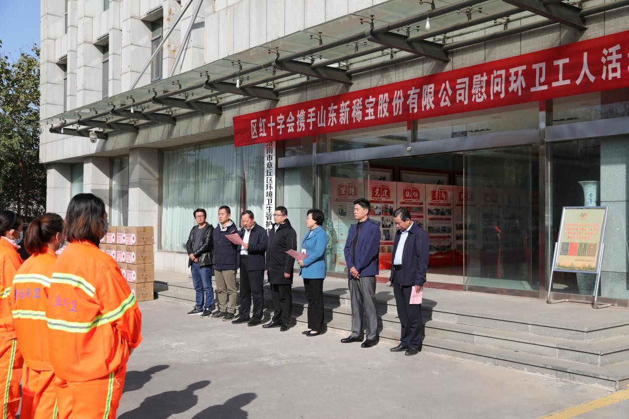 2020年11月3日,新稀寶集團(tuán)攜手章丘區(qū)紅十字會為章丘區(qū)環(huán)衛(wèi)工人送去溫暖問候。捐贈善卡優(yōu)乳清乳鐵蛋白固體飲料共1200罐,總價值432000元。