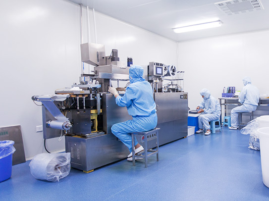 生產(chǎn)車間內(nèi)部空氣經(jīng)過初效、中效、高效三效過濾由空調(diào)送風系統(tǒng)送入,凈化級別達十萬級標準。為確保生產(chǎn)區(qū)的高度潔凈,設有專門的人流物流通道,進入車間的人員必須采取嚴格的凈化措施,換鞋、更衣、洗手、戴上口罩,穿上無纖維脫落、不吸附塵粒、防靜電、潔凈的工作服,通過緩沖區(qū),才能進入潔凈生產(chǎn)區(qū)。